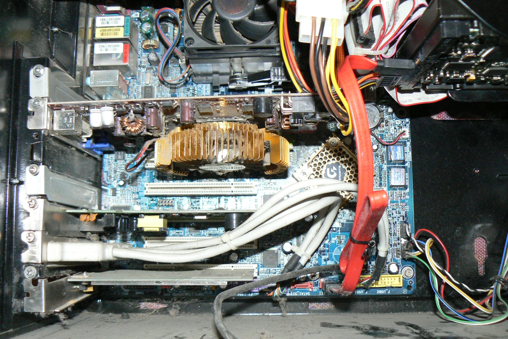 Tak jediné co se mi povedlo vyčíst z desky je tohle: Gigabyte GA-K8NS ULTRA 939. Ale jestli je to typ nebo název desky nevím, nic jiného tam k vidění není.
