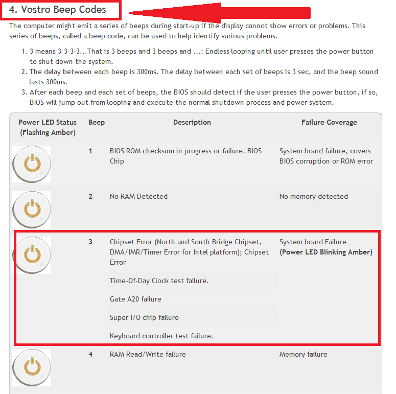 To už jsem také našel, i když se mi to v angličtině nezobrazí, ale bohužel tam pro 3 pípnutí nic nevidím.
