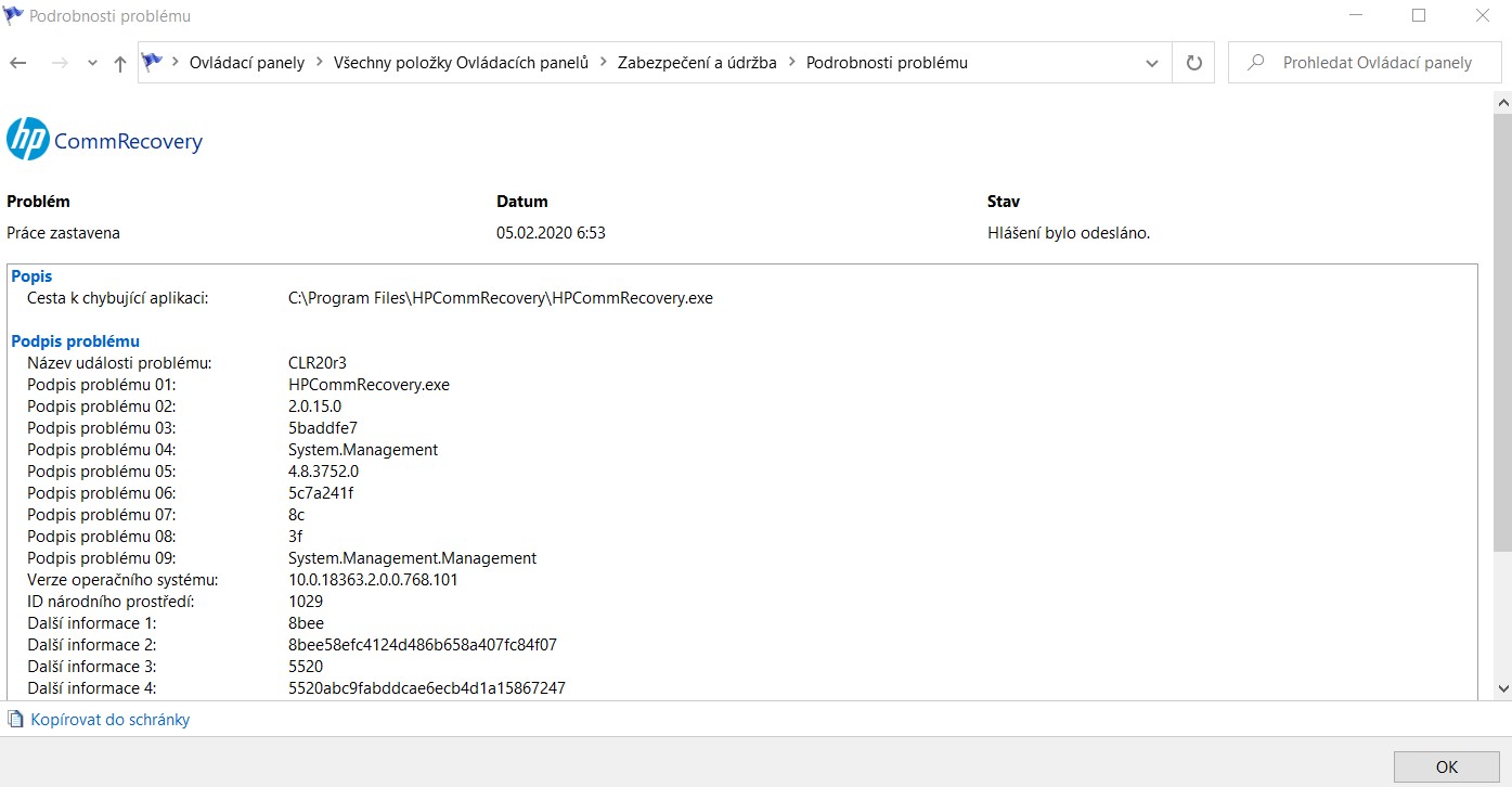 Než poděkuju za pomoc, mohu se ještě v rychlosti zeptat, co s tou kritickou chybou "CommRecovery" z historie spolehlivosti? Pořádně jsem se nedočetl, co ten program vlastně dělá. Přes msconfig v službách je však přímo název, co se dá vypnout.