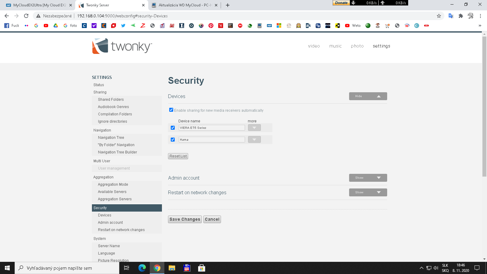 Nastavené to mám takto ale prečo mi v domácej sieti Cloud nevidno, jedine v KODI a v Twonky zase nevidím Sat.tuner. Predtým to všetko fungovalo. TV nevidí ani Twonky a v Twonky ho vidím.