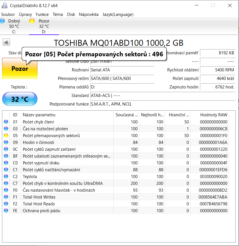Už jsem objednal SSD, počet přemapovaných sektorů jde vcelku rychle nahoru. Když jsem tohle téma založil, bylo jich pár stovek, v tuto chvíli již 12 tisíc.