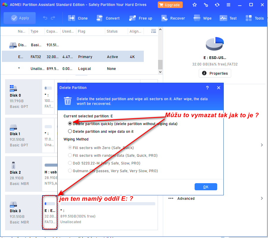 Dá se nějak odebrat v tom programu ten disk ? USB šlo i přejmenovat ale externí disk na na oddílu 3 nejde s tím nic dělat :((