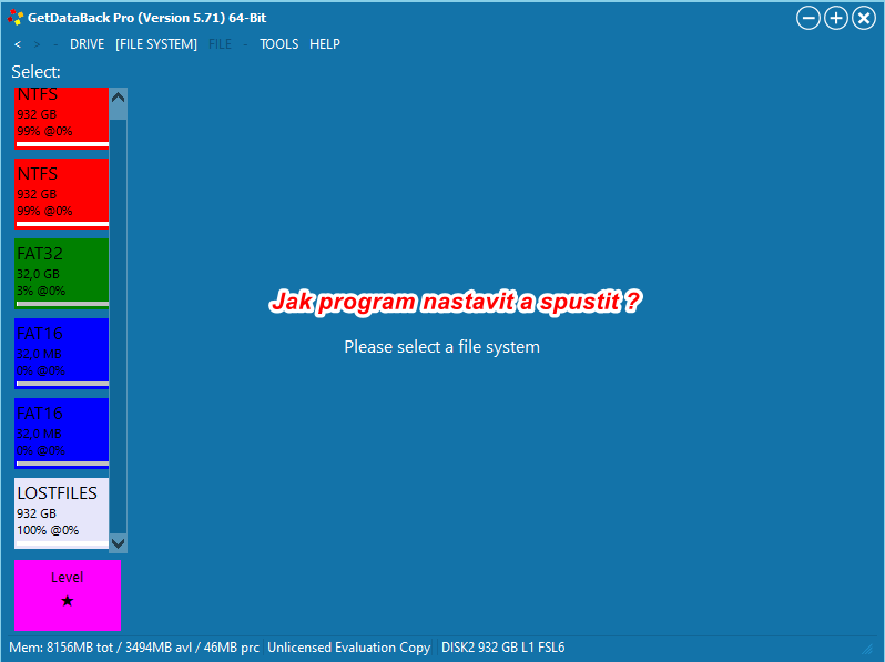 poprosím o navigaci jak postupovat v programu GetDataBack Pro