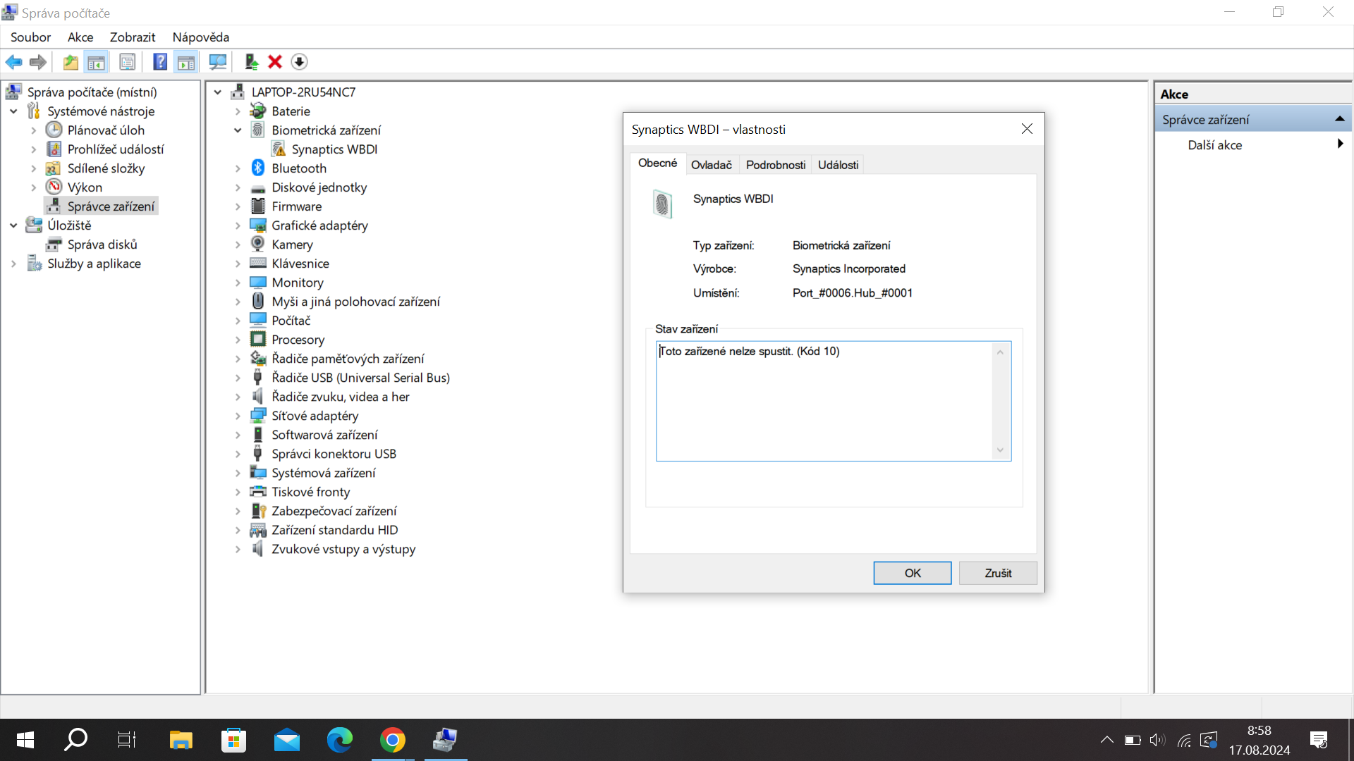 Ahoj kluci, najednou mi přestala fungovat biometrika, resp. snímač otisku na laptopu (lenovo ideapad), nesetkal se někdo s podobnou situací, díky. ..přikládám screen