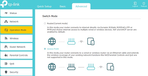 Tohle nelze. Směrovač je router a protože jsi ho přepnul do režimu switch/ap, nemůže a nebude fungovat jako směrovač.