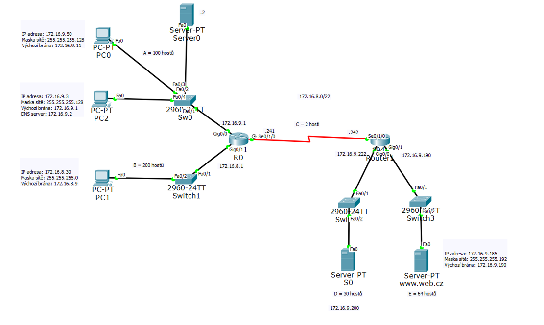 Bod 3, že PC0 s maskou 255.255.255.128 nevidí všechny IP svého rozsahu, zřejmě tedy ani http://www.web.cz ...vlastně i ten má masku, která omezuje 255.255.255.192