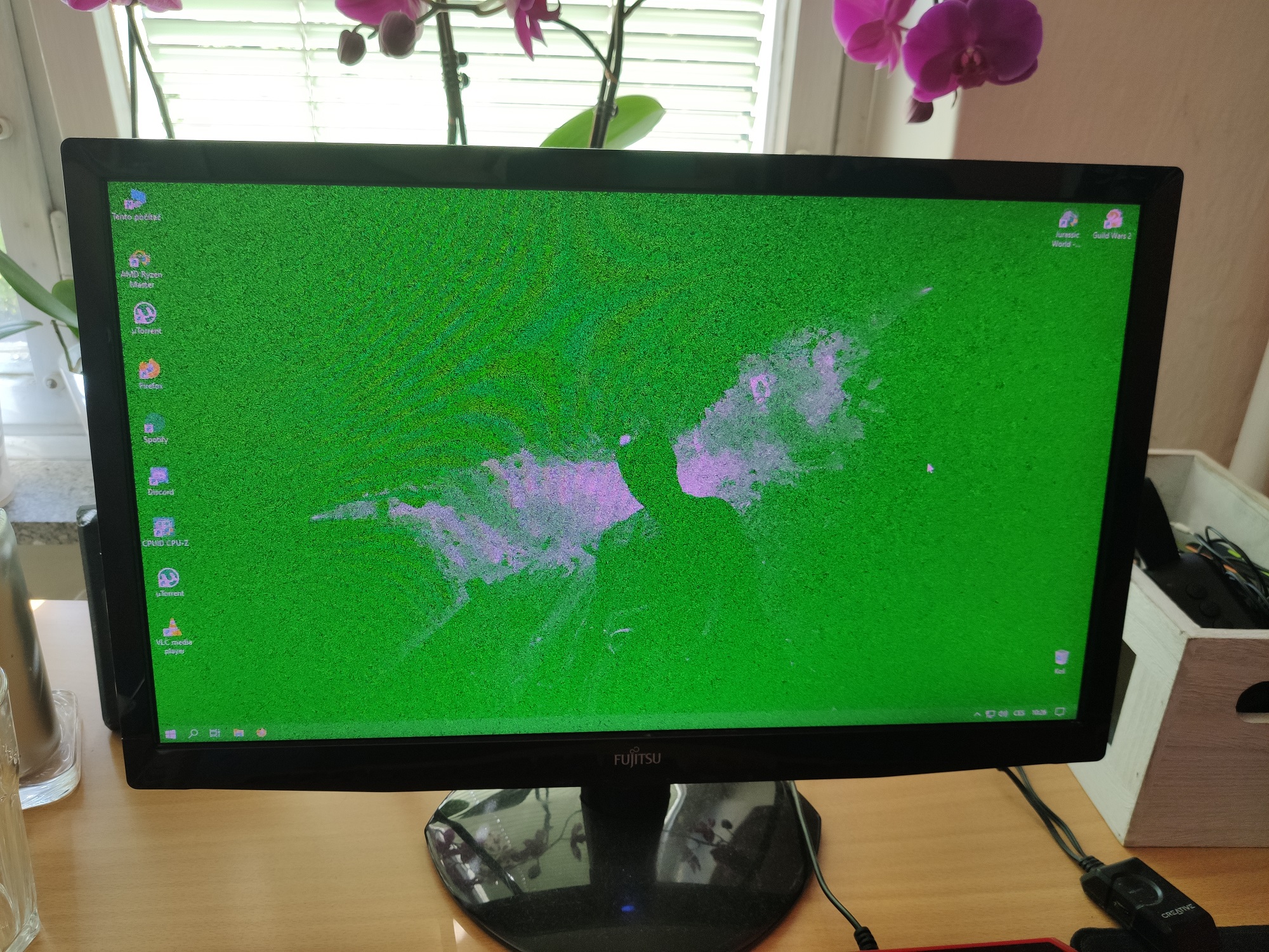 Tohle mi dneska ráno udělal monitor a včera taktéž akorát to mělo červenou barvu. PC normálně jede nezaskne se a když dám restart tak to už je v pohodě. Může to být kartou? Že bych ji případně šel vrátit. Jedná se o kartu SAPPHIRE PULSE Radeon RX 5500 XT 4G. Monitor je sice starší už ale nikdy toto nedělal až teď poslední 2 dny.