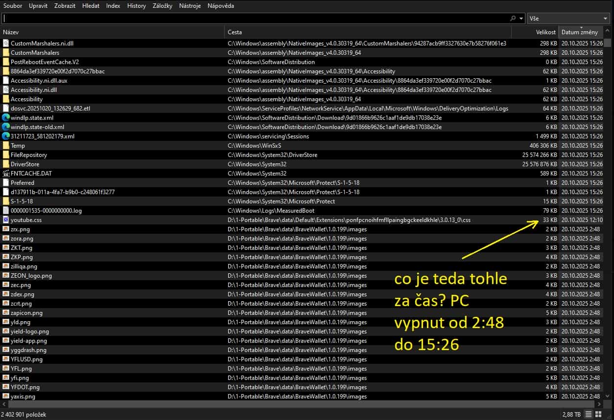 Ale otázkou stále zůstává. Jak může dojít ke změně souborů (dle časového razítka), když je počítač vypnutý? A co to vlastně je?